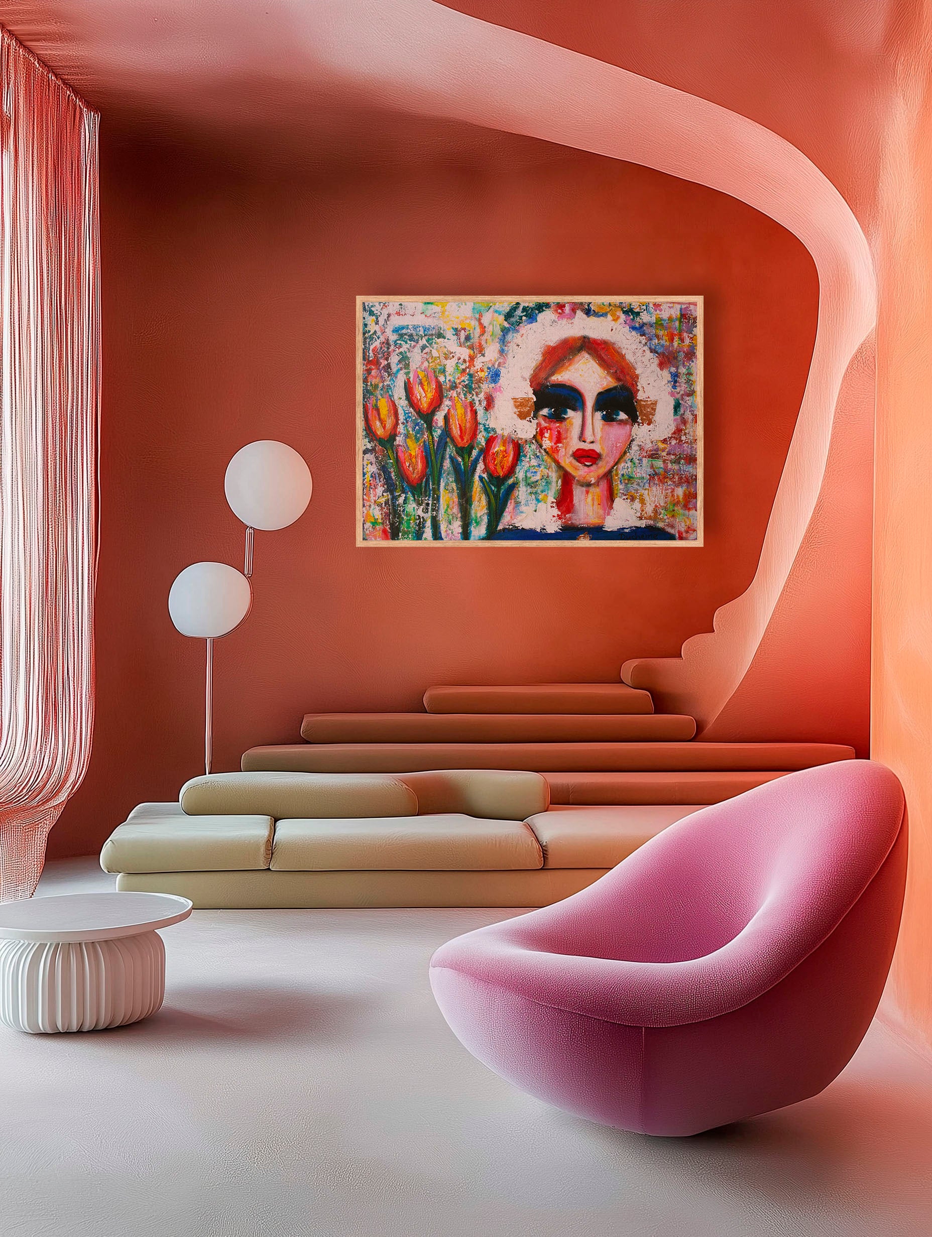 Origineel schilderij – kleurrijk expressief portret – Boerin in Bloei – Danielle Ducheine