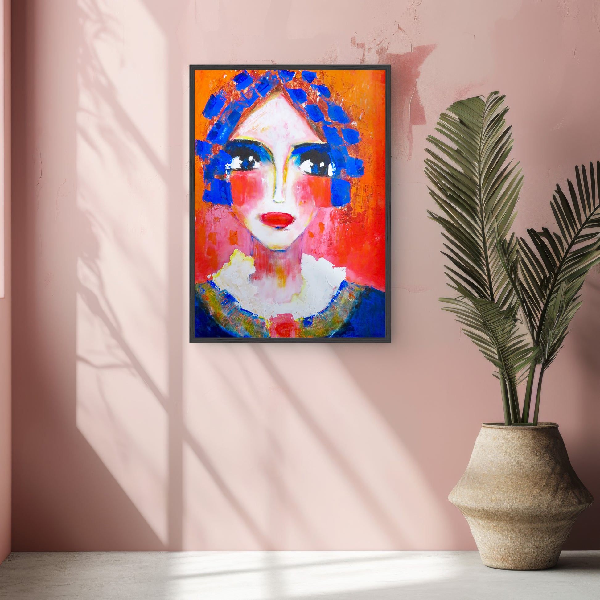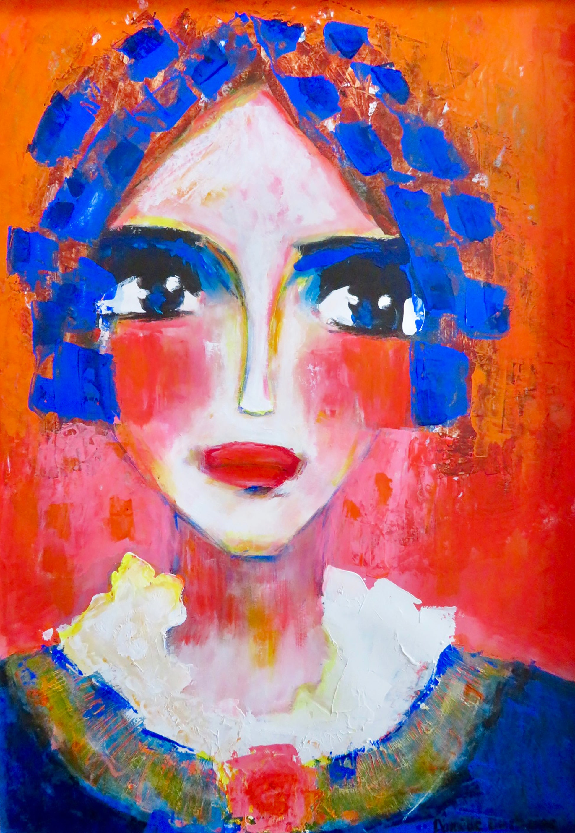Droom Niet Weg is een kleurrijk mixed-media portret met barokke flair.