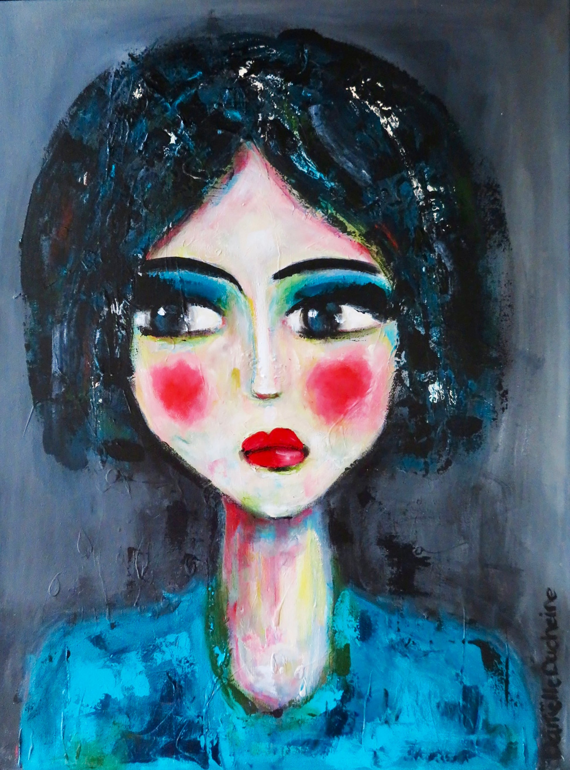 Met mixed media, intuïtieve streken en gedurfde kleurcontrasten kreeg ze laag voor laag haar karakter.