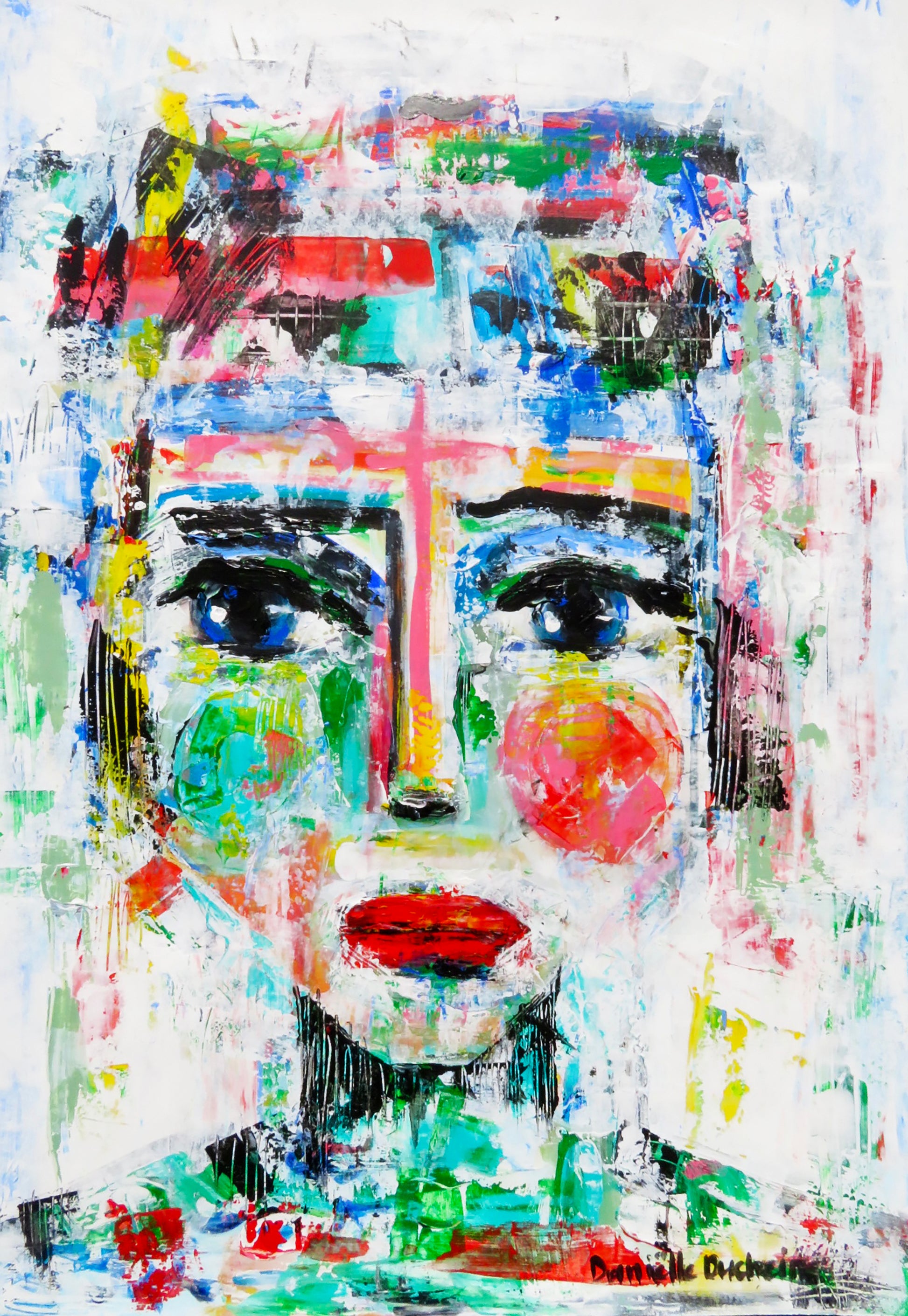 Met krachtige streken, dikke texturen en pure intuïtie is dit gezicht ontstaan.
