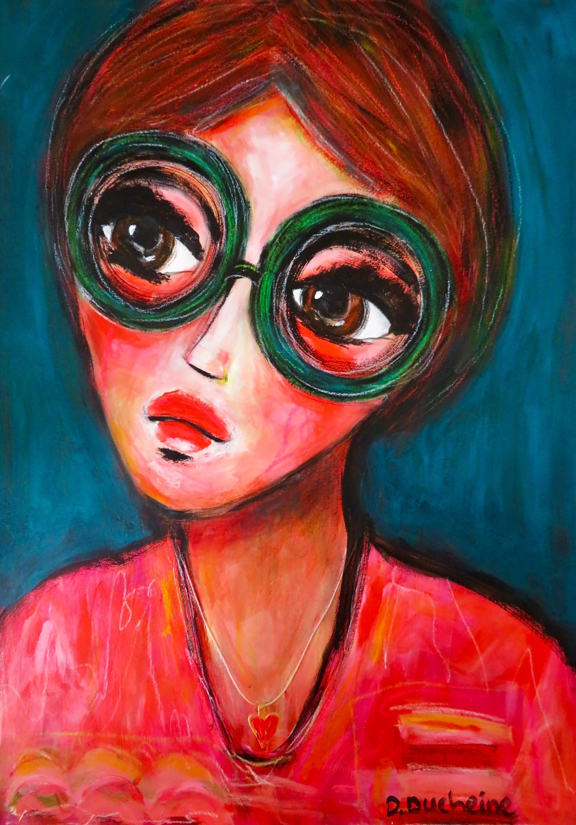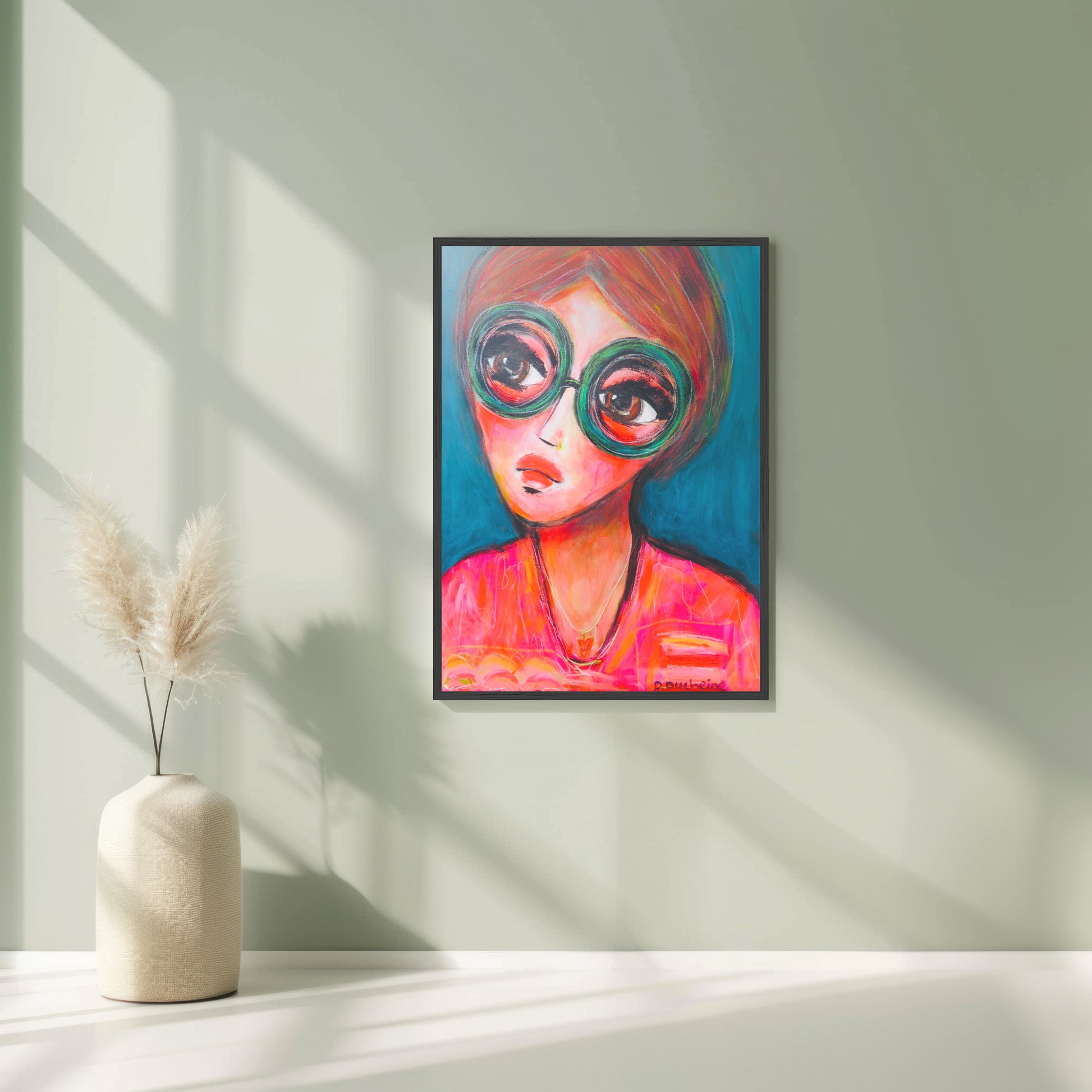 Dit intuïtieve portret is geschilderd vanuit gevoel. Acrylverf en olie pastels werkten samen in een dans van lef en expressie. Laag na laag groeide Lone uit tot een moderne klassieker. Een vrouw met karakter. Een symbool van individualiteit en innerlijke kracht.