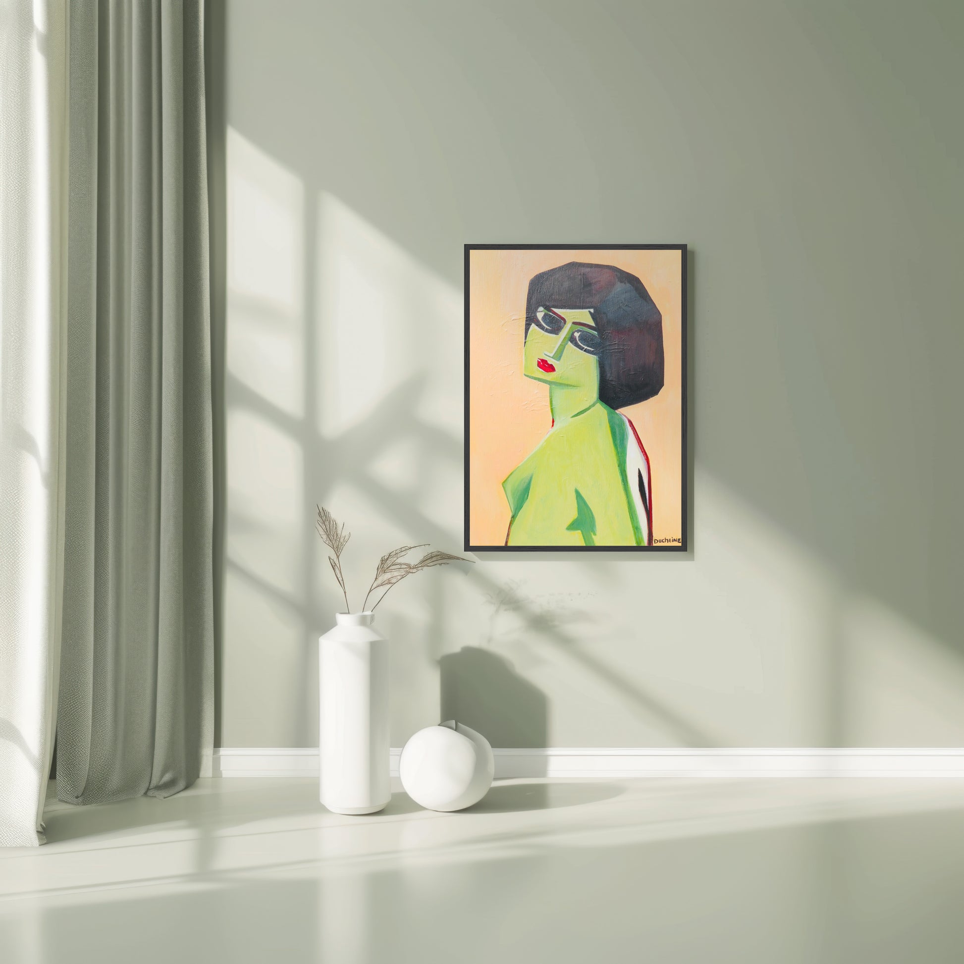 Opvallende kleuren en expressieve lijnen geven haar mysterie.