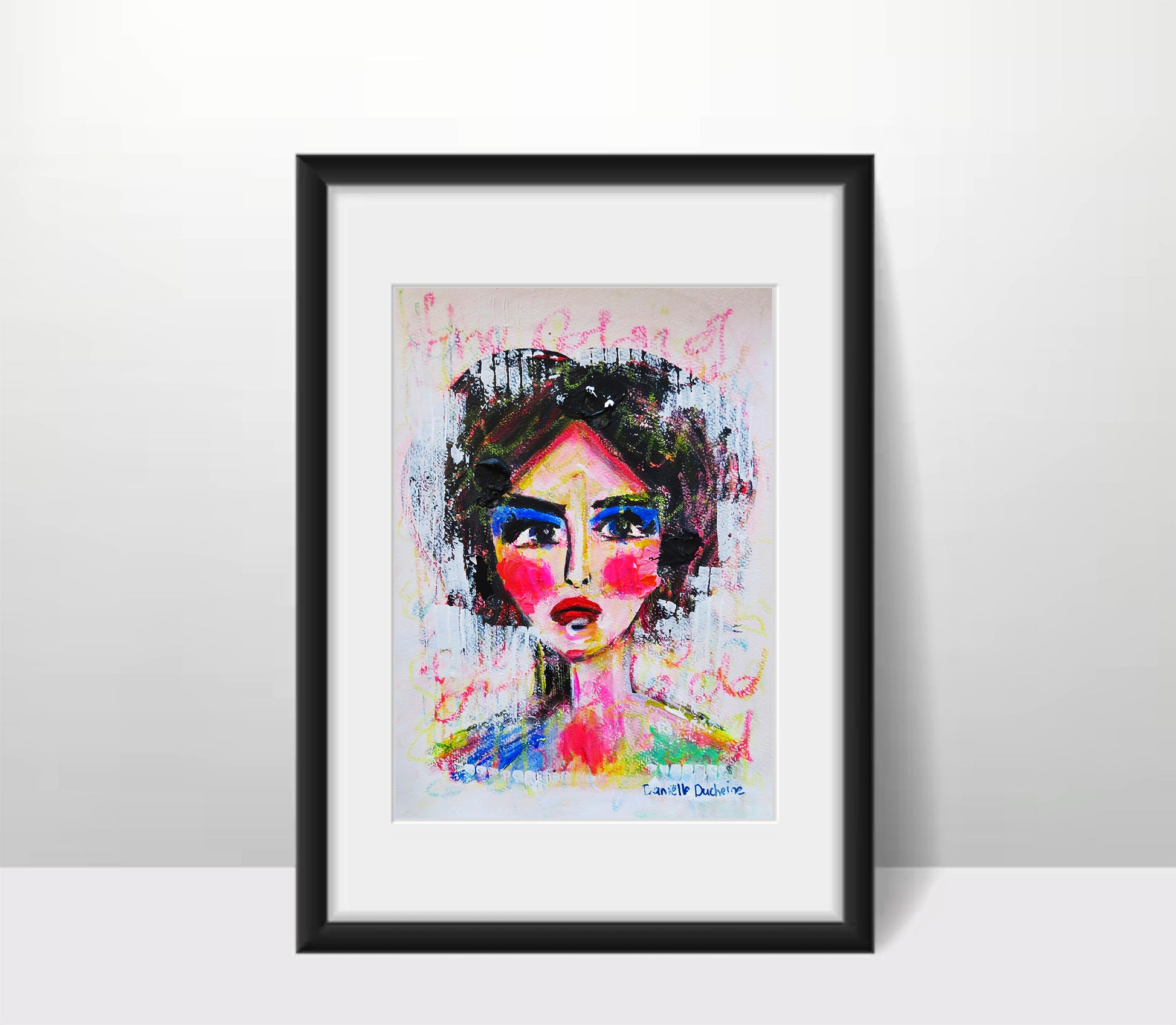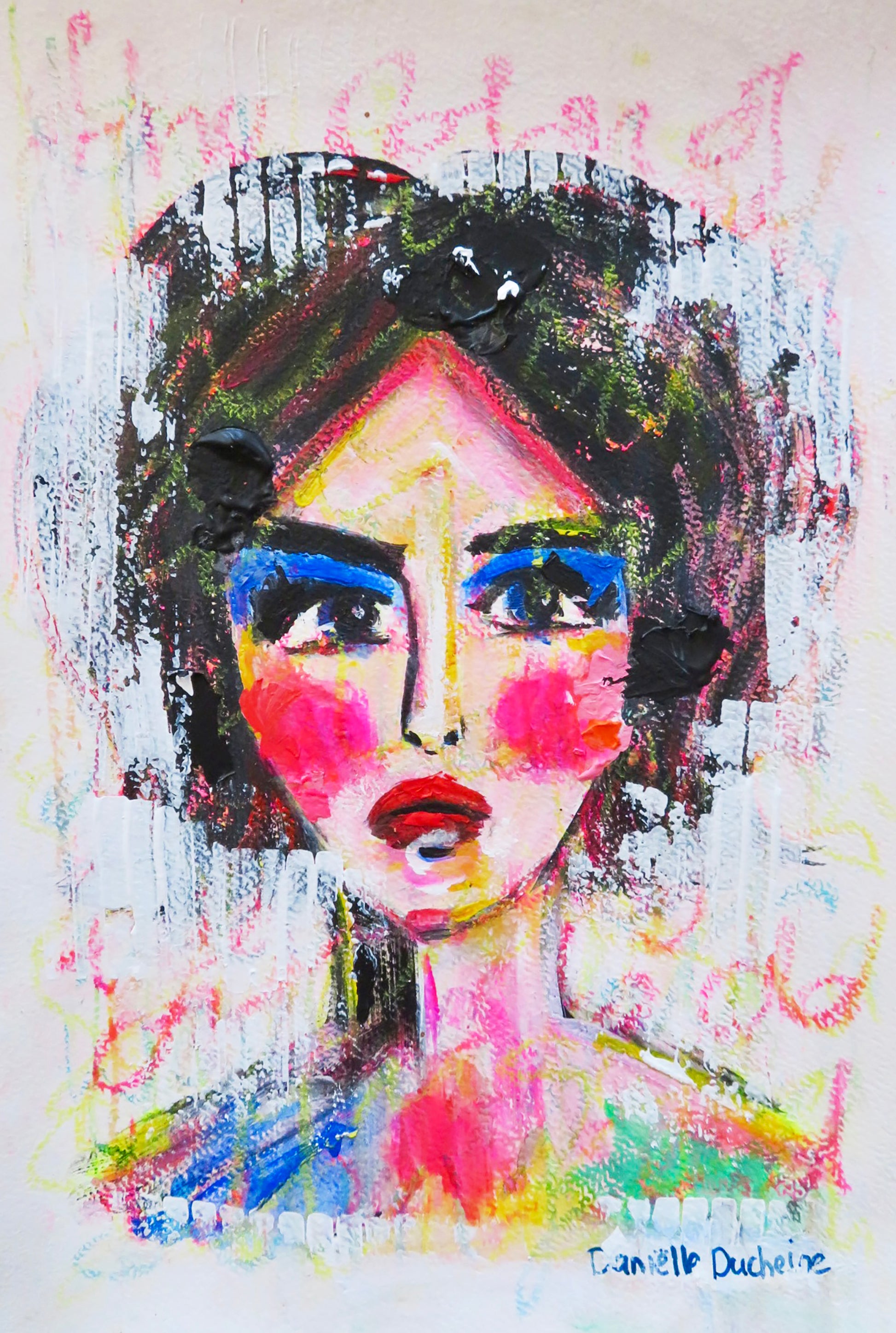 Met acrylverf, oliepastels en dikke dotjes verf als finishing touch kreeg ze haar energie, haar lef en haar grote hart.